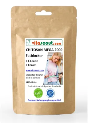 CHITOSAN 2000 Fettblocker + L-Leucin + Chrom - 540 Tabletten - Einzigartige Formel
